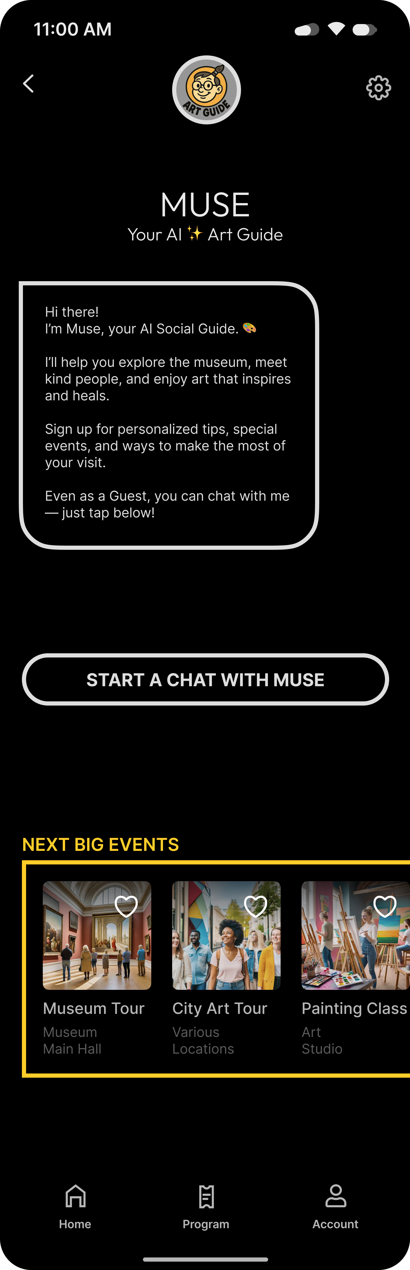 ShowArt is a mobile app that helps people explore art events in an inclusive, welcoming way — with personalized features for first-time Visitors, Friends, and Patrons.